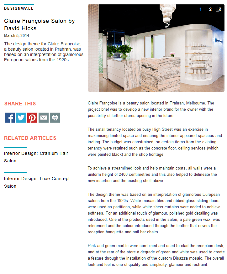 Claire Francoise in the media, here is a selection of articles and awards written and published about us over the years.